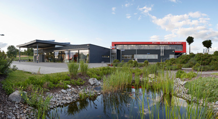 Im Industriegebiet zwischen Villingen und Schwenningen hat man auf einem 6200 Quadratmeter großen Grundstück ein hoch modernes Orthopädie + Vital Zentrum mit 1800 Quadratmetern Gebäudefläche errichtet, barrierefrei ausgelegt und konsequent an den Bedürfnissen der Kunden orientiert.